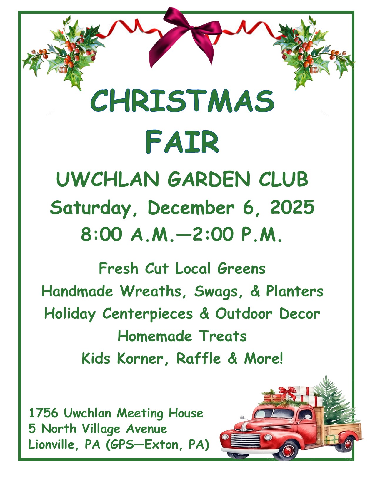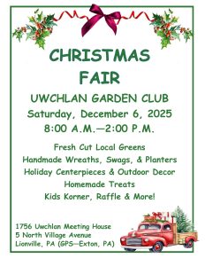 Our Christmas Fair is snow, rain, or shine, so come dressed for the weather and arrive early for the best selections! Our members will be wearing aprons, so we are easy to find, if you have questions or need help.